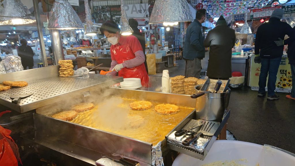とりあえず何か食べようと思っていたので、揚げチヂミみたいのを食べる。